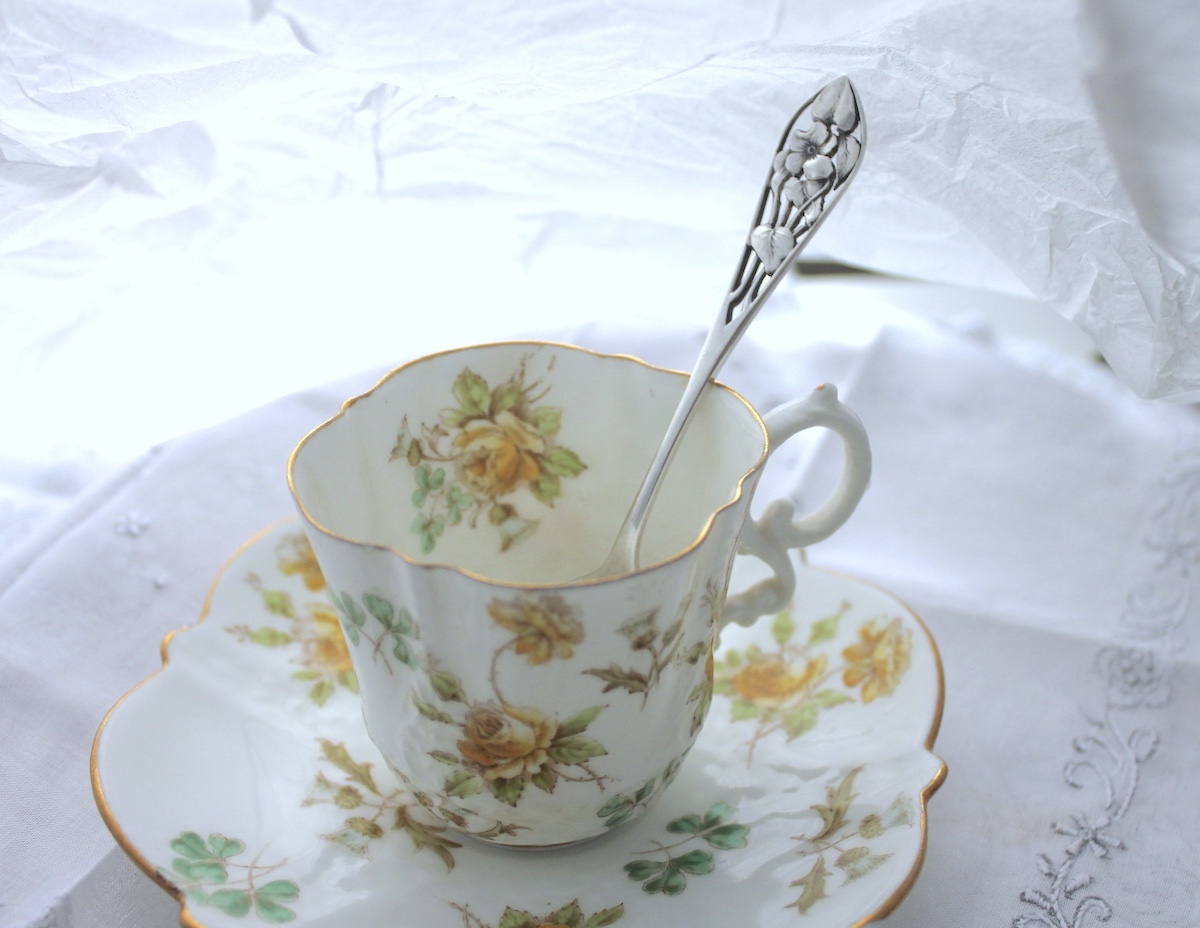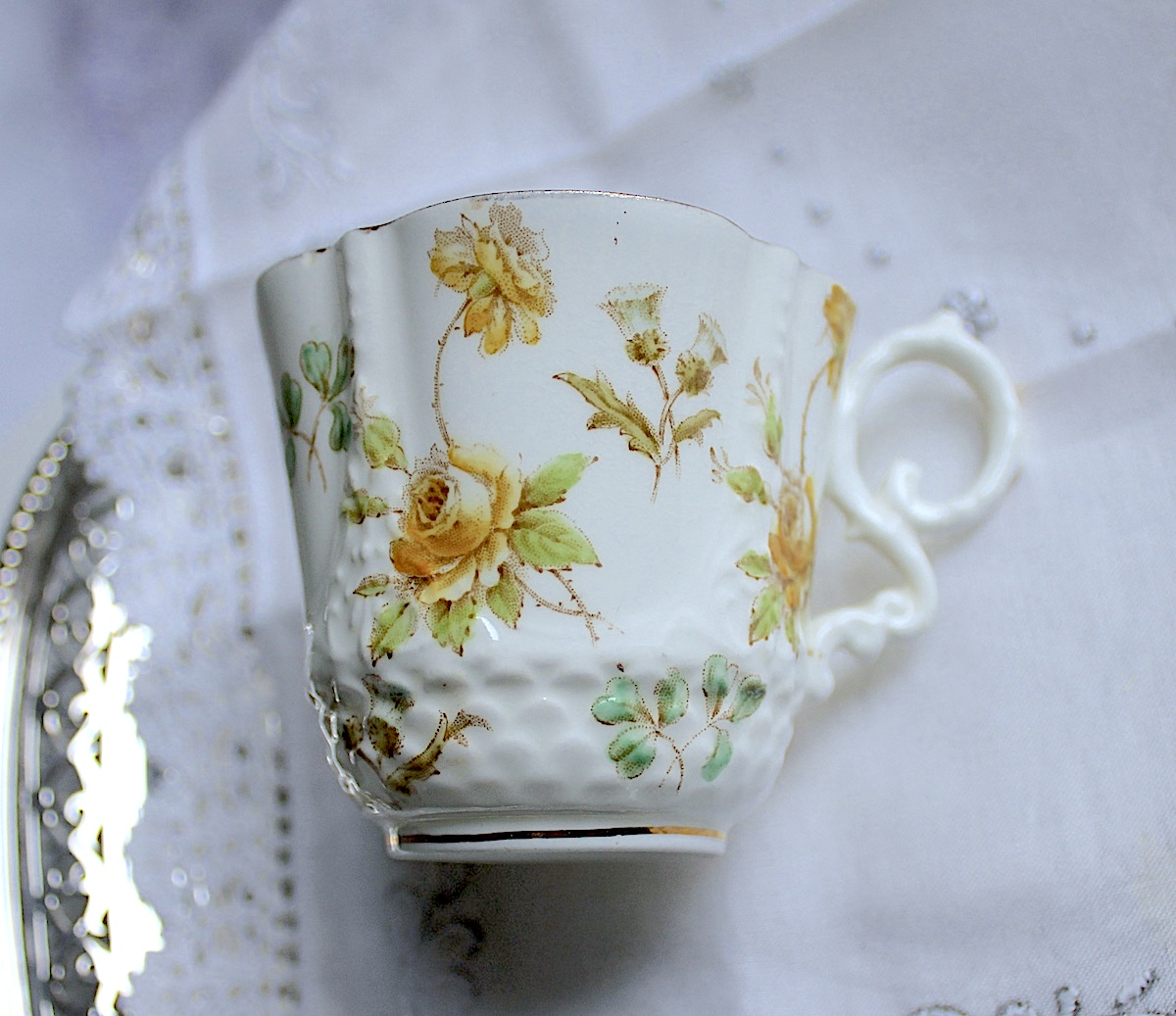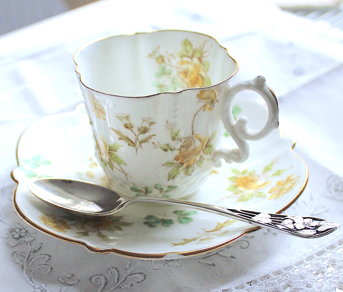 そしてもう一つ、このカップの絵柄は、19世紀末に流行した、薔薇とアザミとミツバの組み合わせ、なんです。