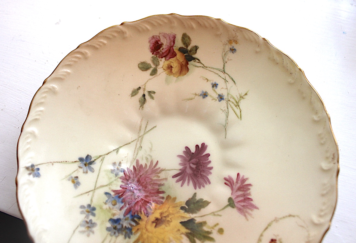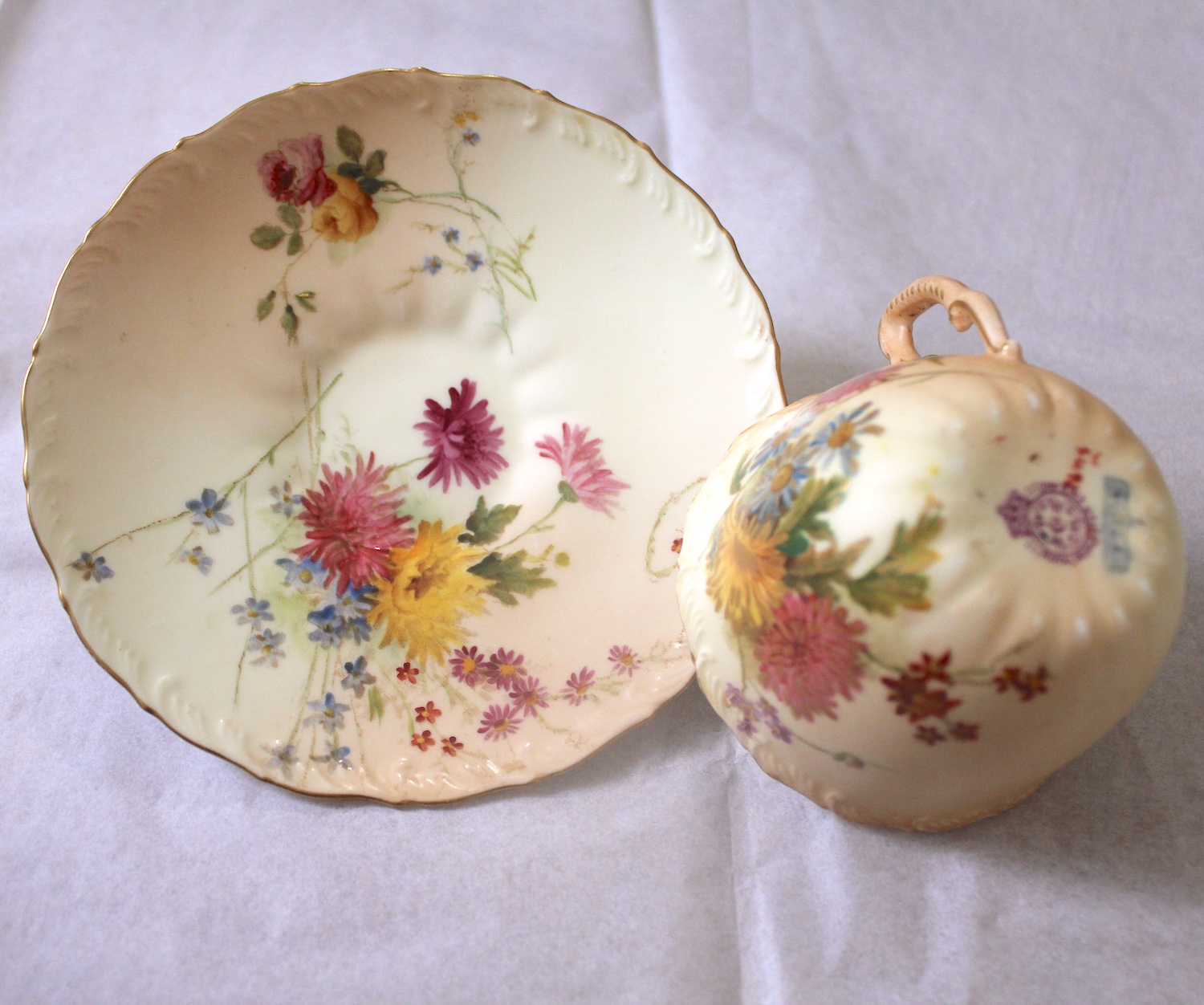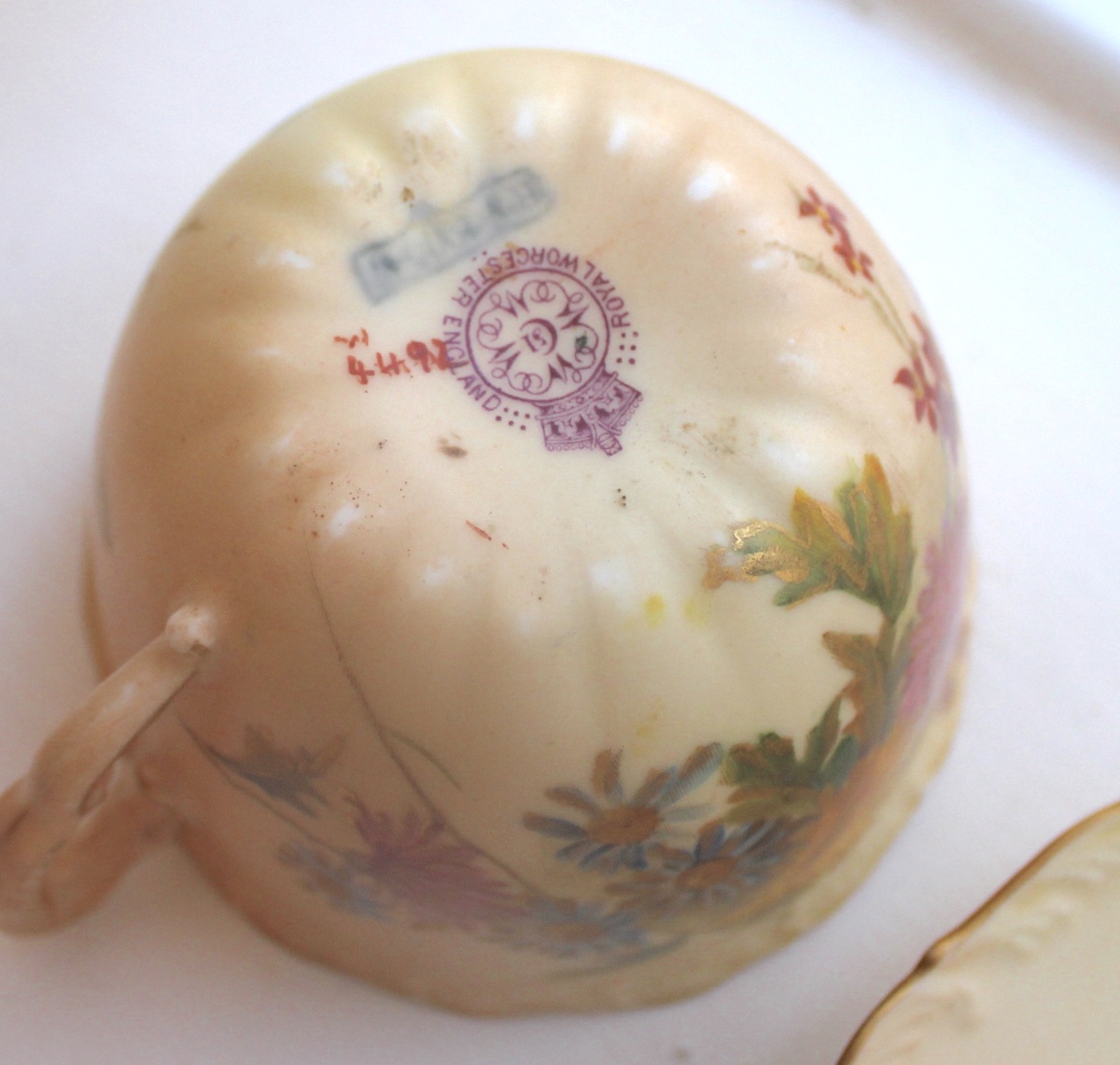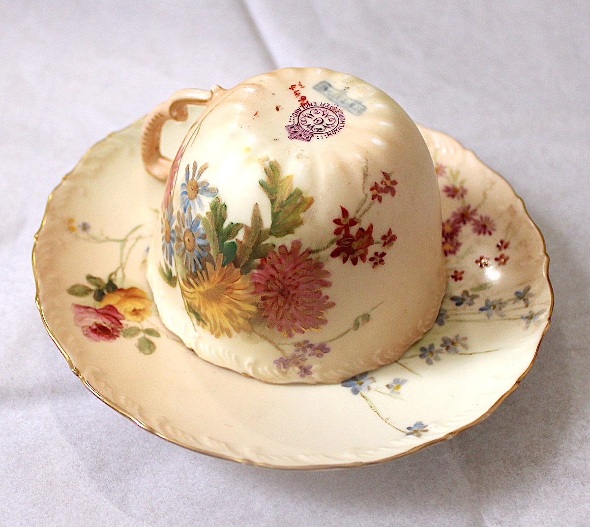 ウースターは1751年に、英国ウースターで設立された、名窯です。1788年にジョージ3世から王室御用達の認定を受け、その名声を確固たるものにしました。1800年代の後半から始まったブラッシュアイボリーのシリーズは、日本や中国など、東洋の影響を受けたアールヌーボー風のデザインで、大変な人気を得ました。このシリーズは現在もコレクターズアイテムとなっています。
