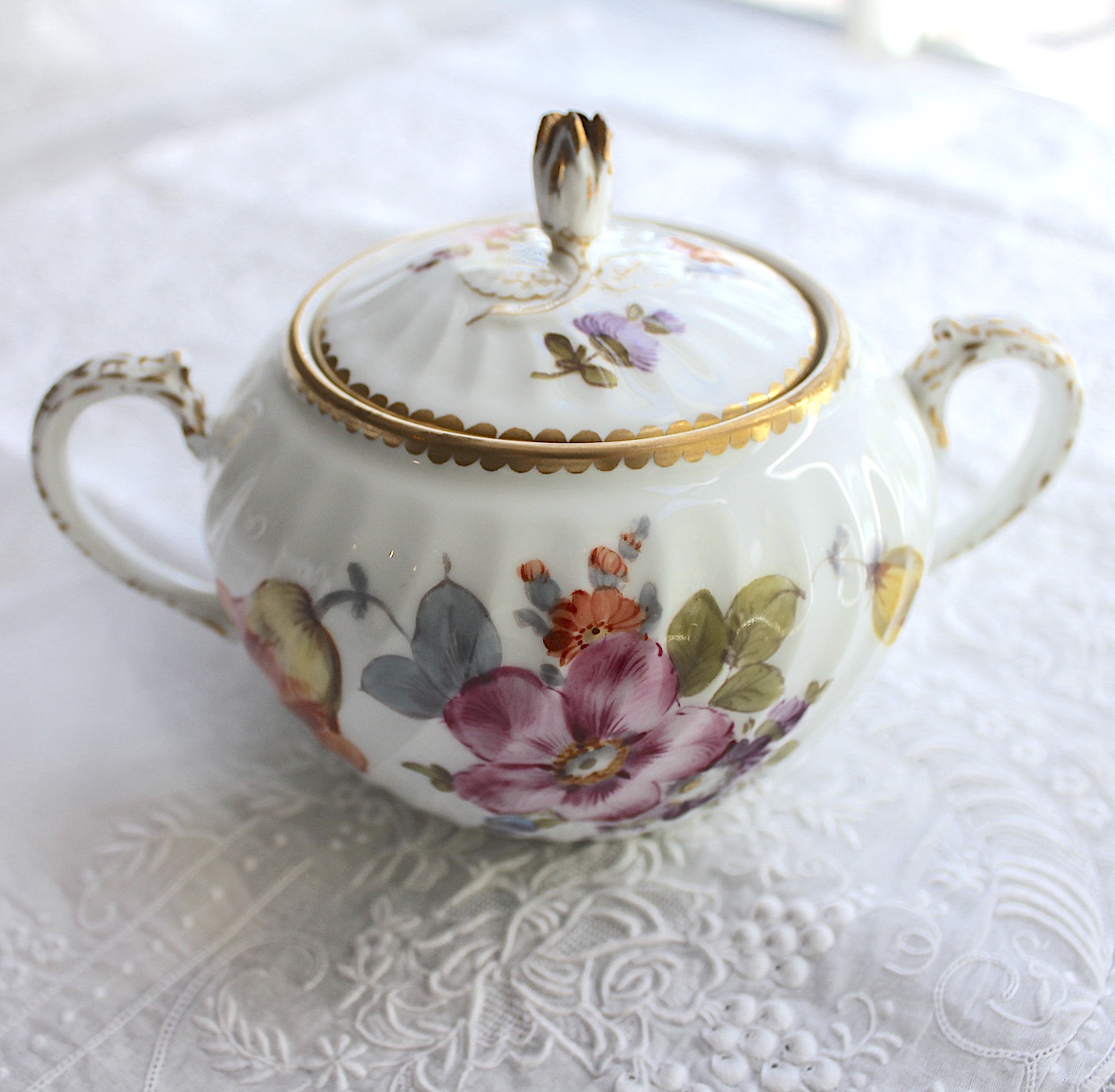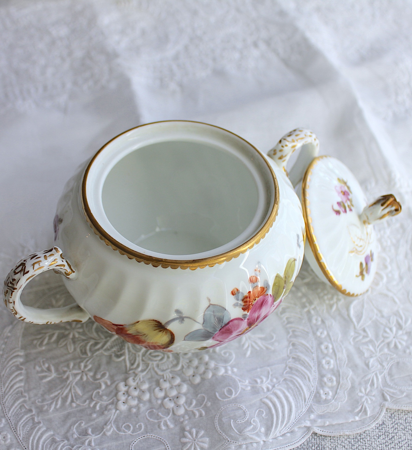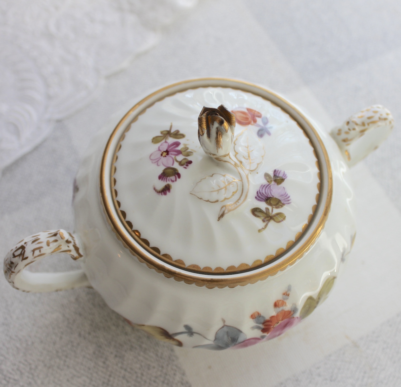 ニンフェンブルグ花柄&金彩 シュガーボウル ハンドペイント ¥65000