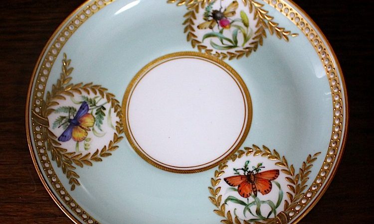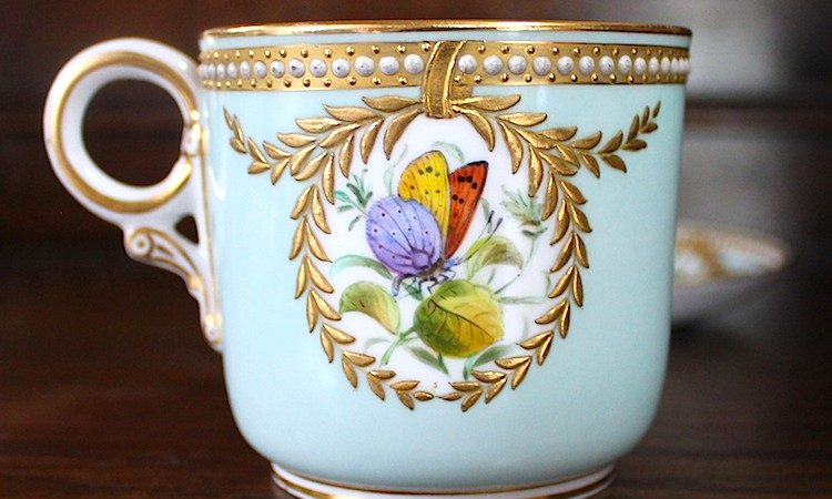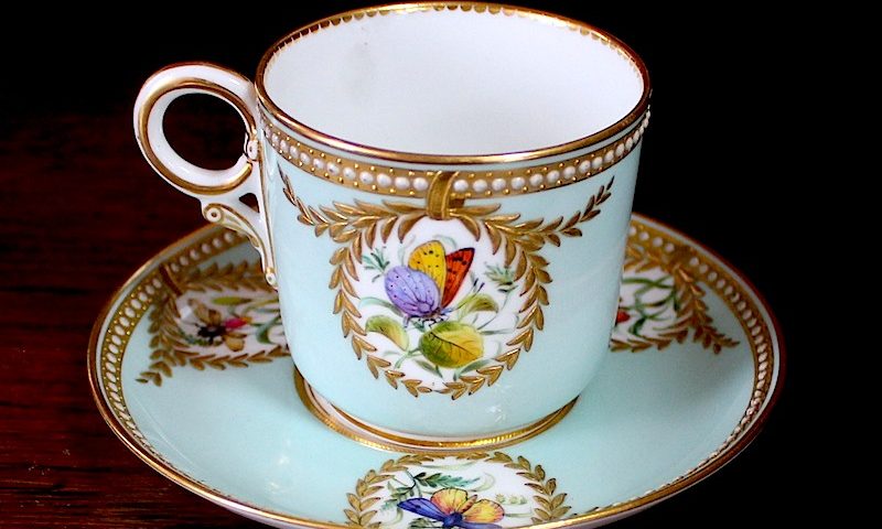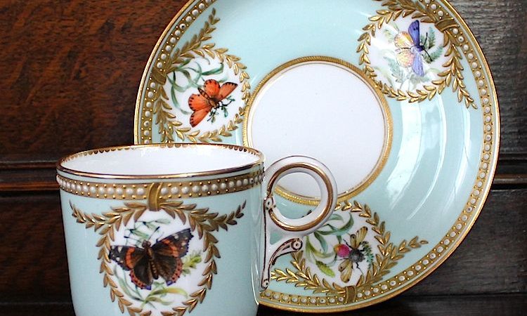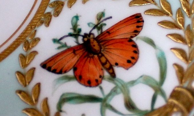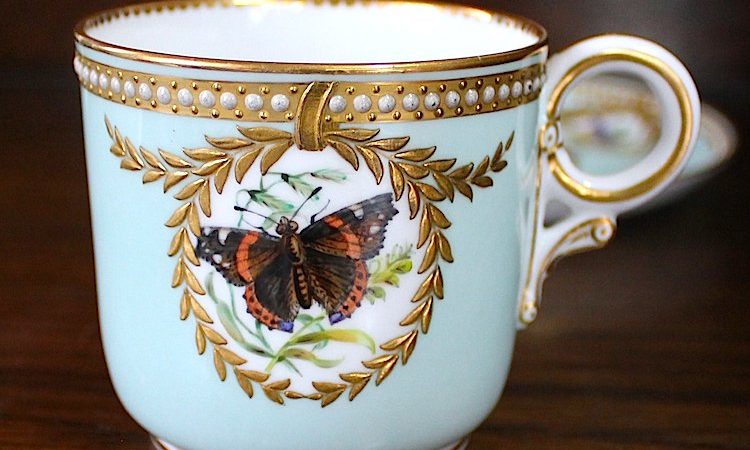 ウースター、蝶がリアルに精密に描かれた美しいカップです。