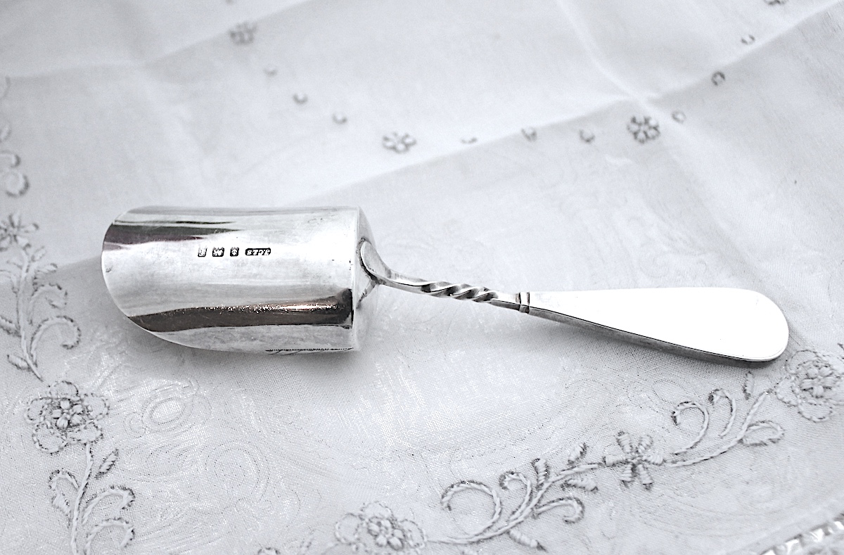 キャディスプーンは小さ目でとても繊細な作りのことが多いのですが、このお品は、厚みもあり、とてもしっかりしたお品です。