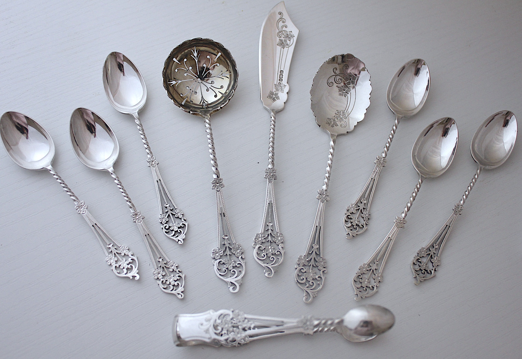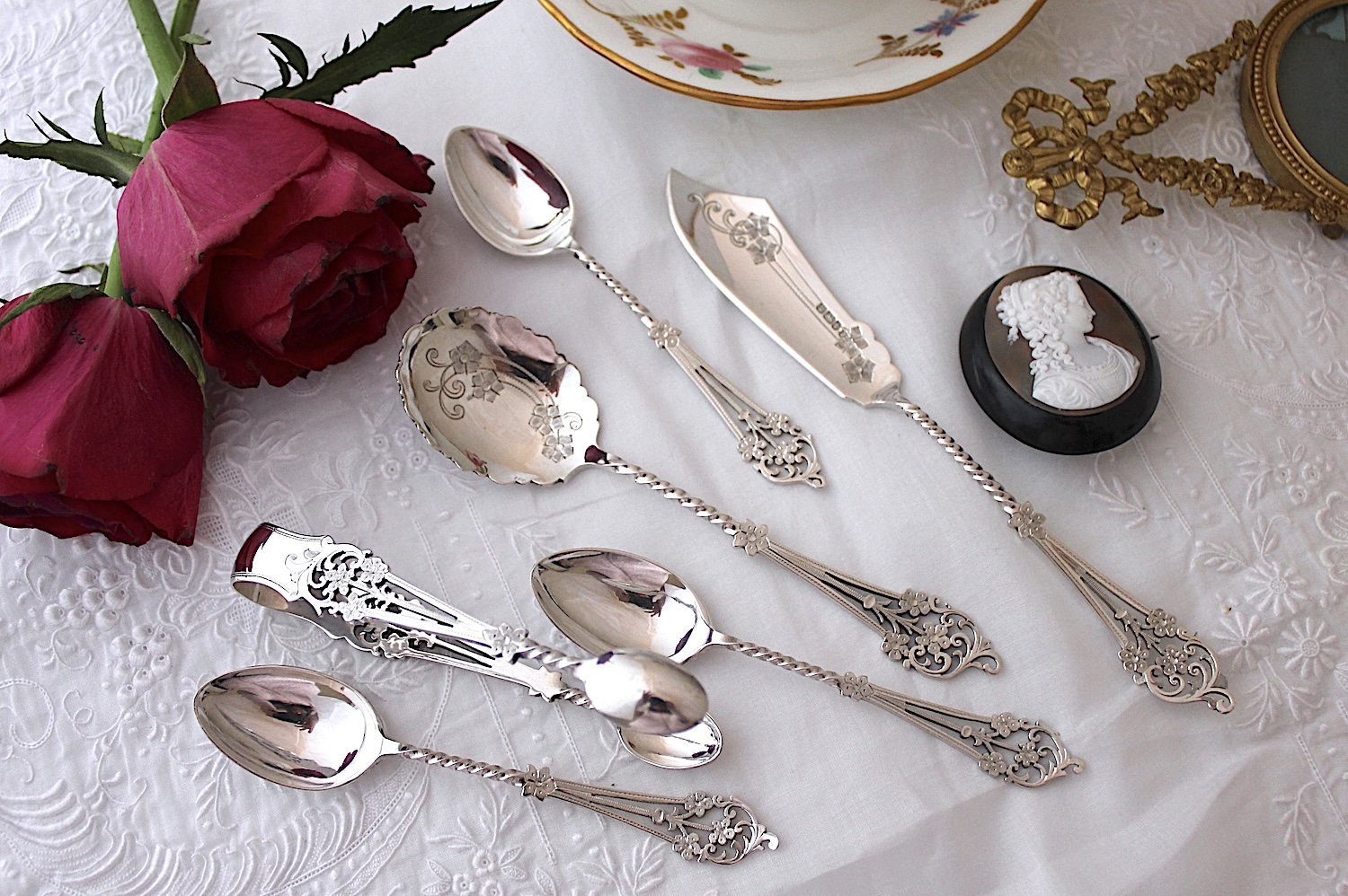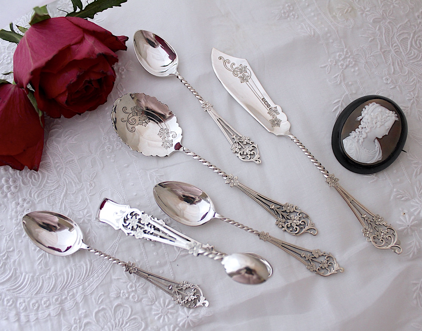 スプーン6本とシュガートング、ジャム、バター、シュガー用の3本のセットです。