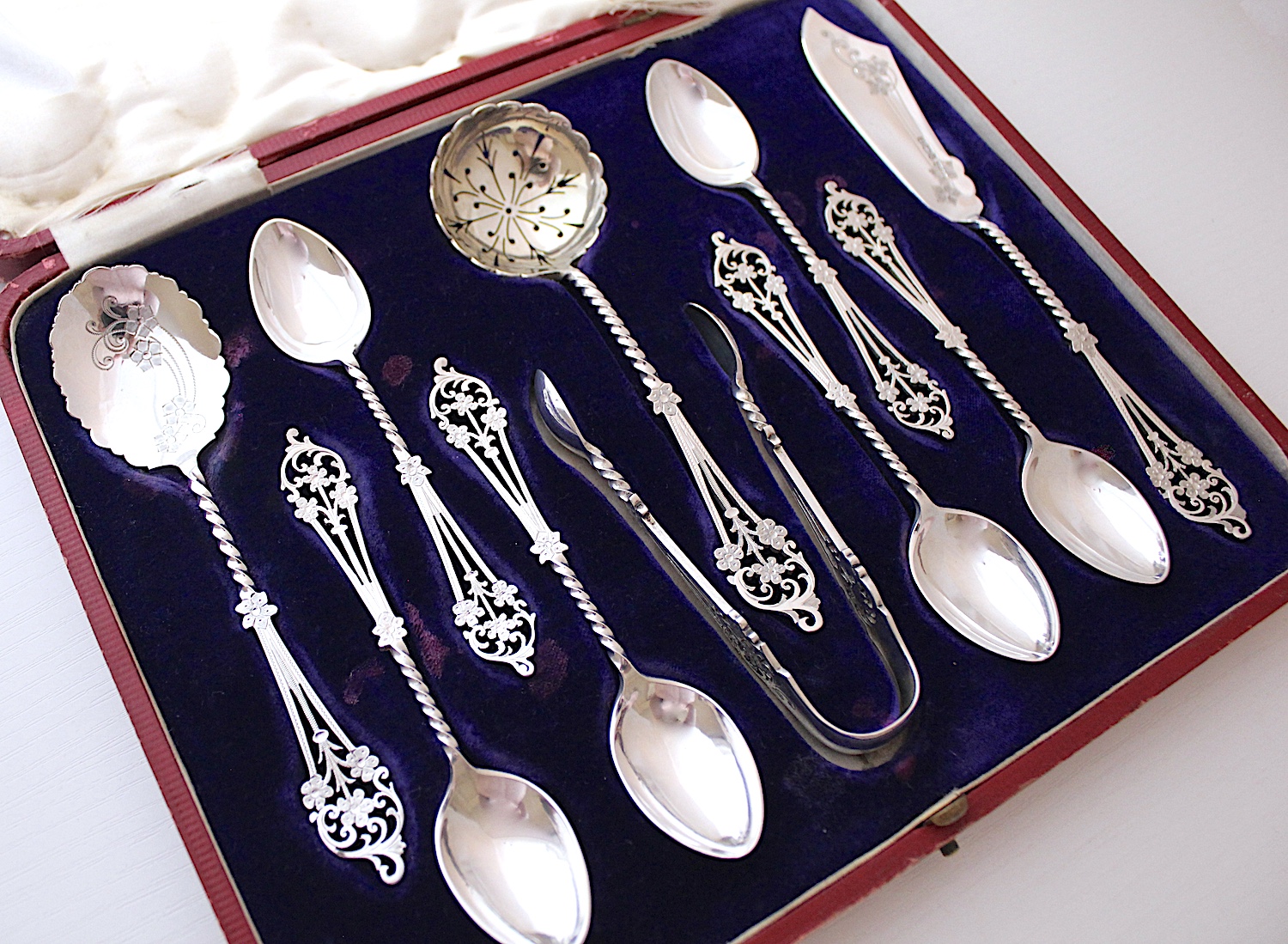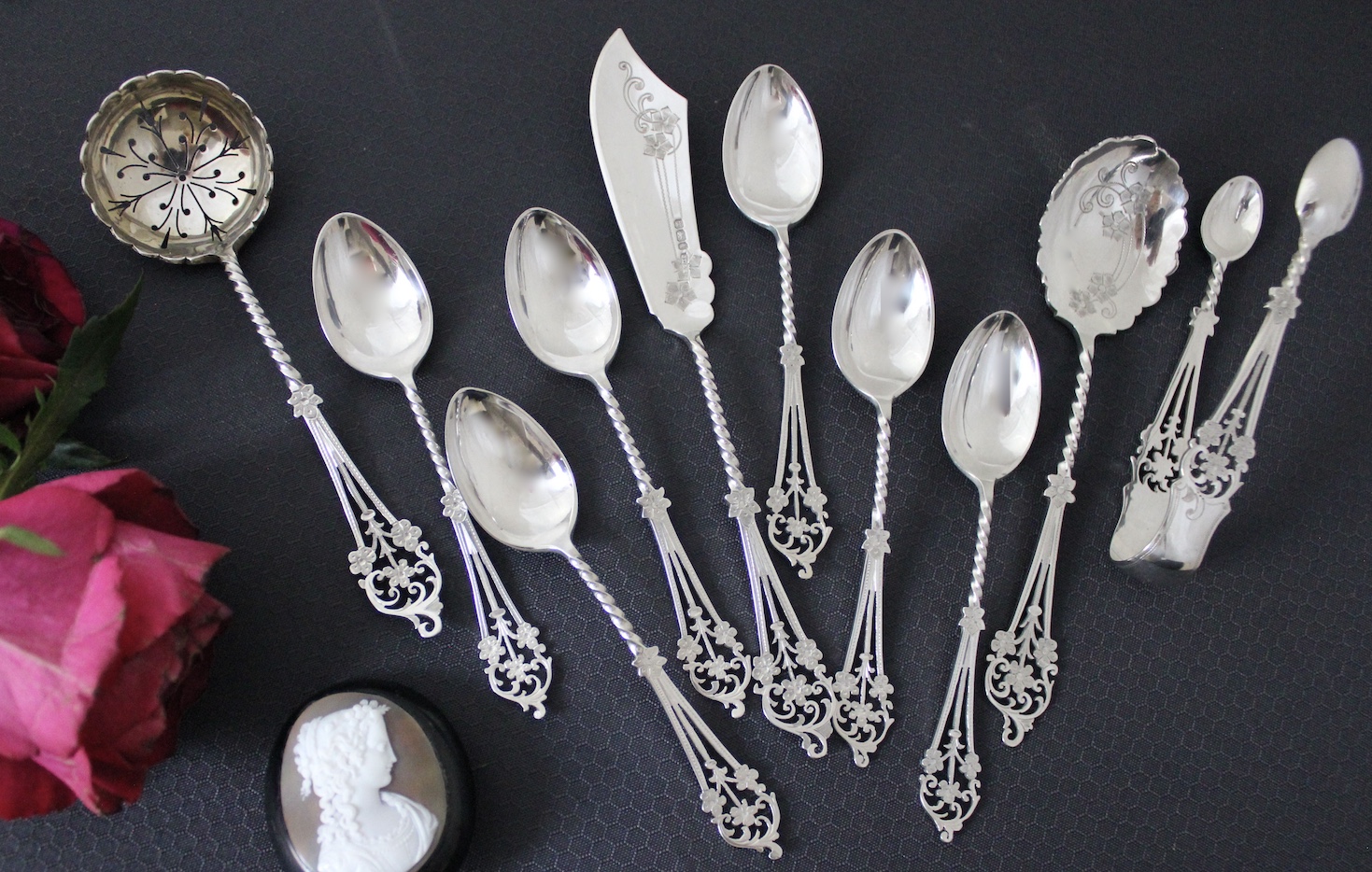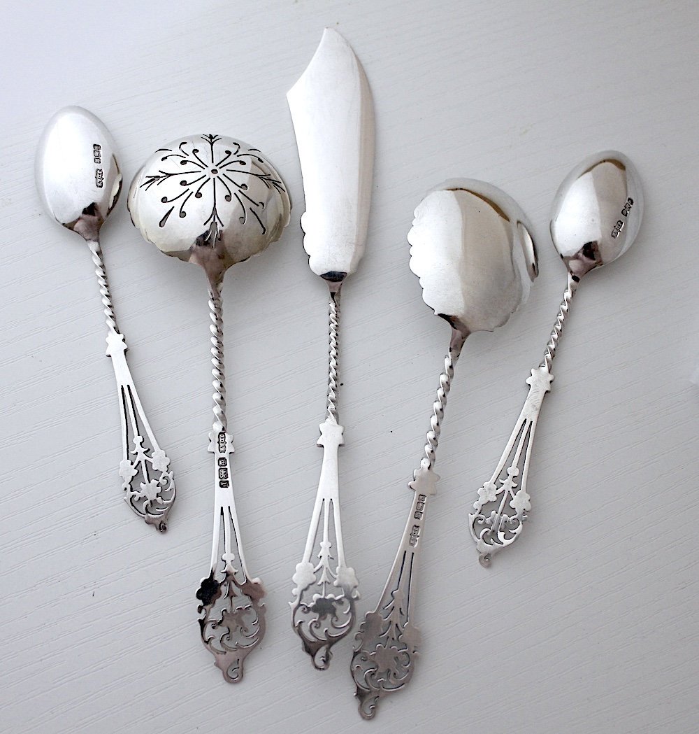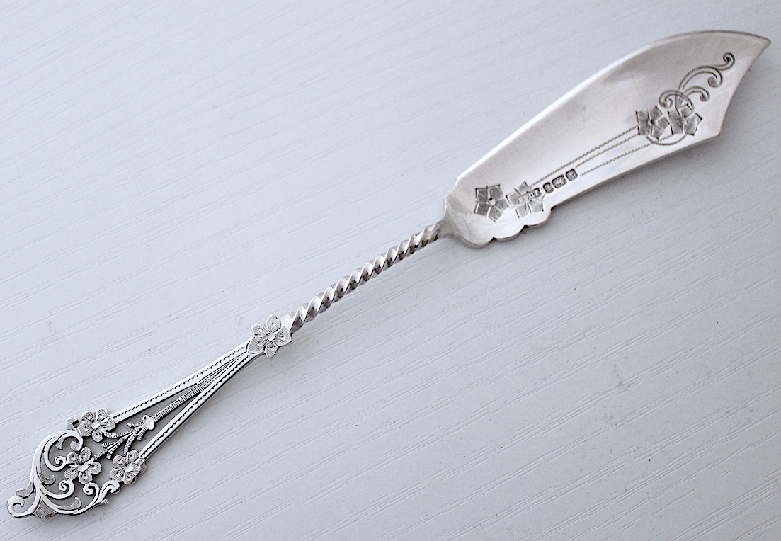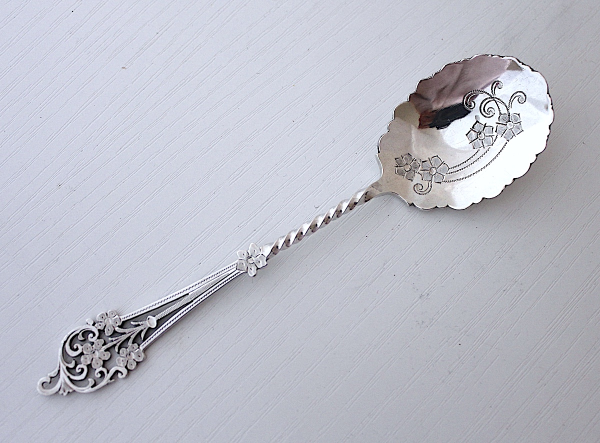 英国アンティークシルバーにおいて、ピアスの素晴らしさは、何度もお伝えしていますが、1800年代後半、ビクトリア時代の終わり頃から、工具の発達もあって、美しいピアスのカトラリーや器が作られる用になりました。すでに大英帝国の勢いは衰えていましたが、このシルバーの技術は、ちょうどその時期に最盛期に達しました。