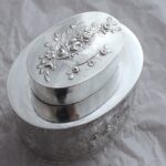蓋の上、側面、ともに花かごの装飾が入っており、大変ラブリーでロマンティックな雰囲気です。