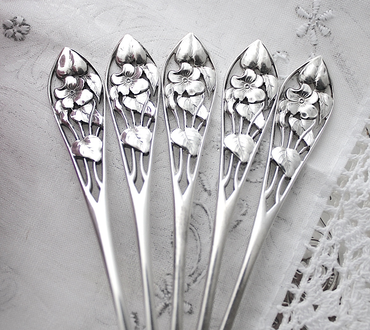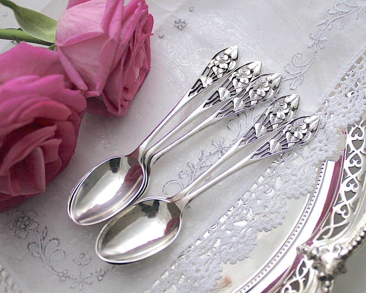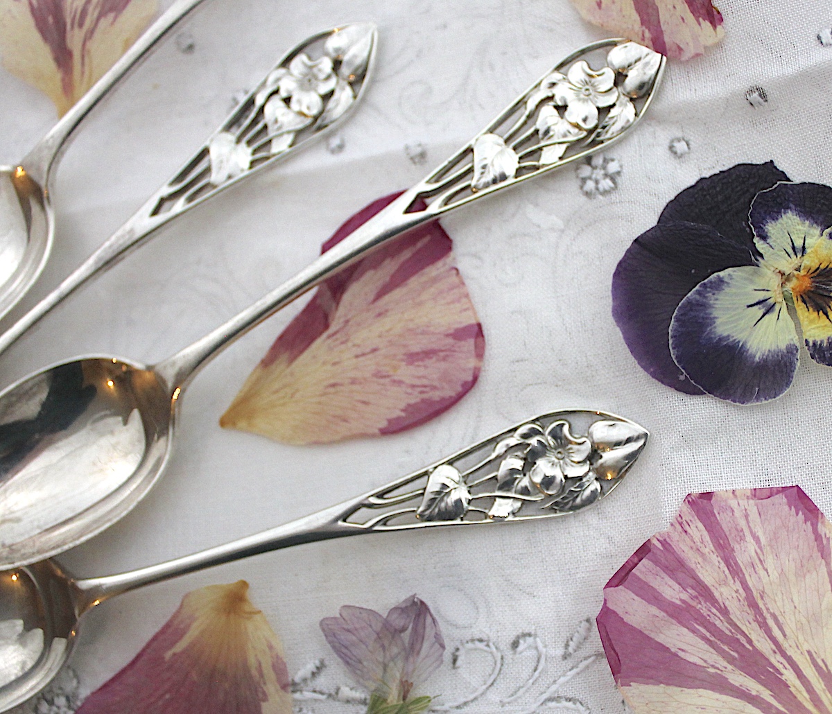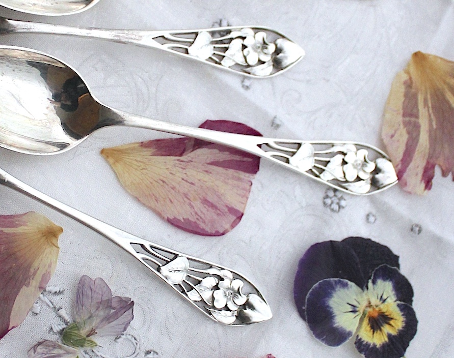 すみれのデザインのピアススプーン1924年 1本 ¥12000、すべてご予約済