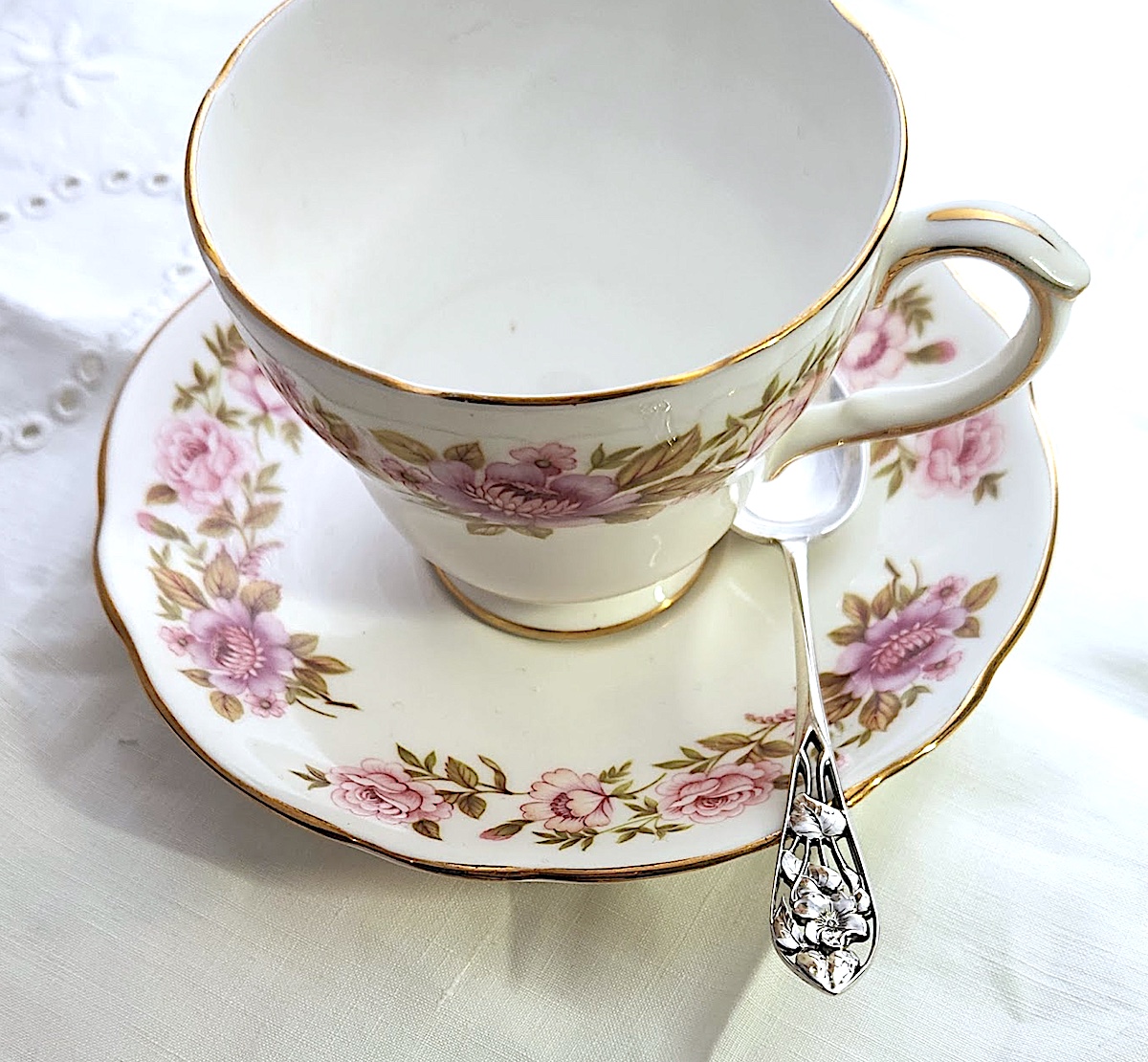 私の手元にすみれのカップがないのがとても残念ですが、実際にすみれティーカップお持ちの方、このスプーンいかがでしょうか。鋳造とピアスを組み合わせたデザインですので、ティースプーンとしてはややずしりとした重さもあり、しっかりした作りとなっています。