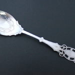 繊細なピアスとボウル部分のシンプルなエングレービングのバランスが良く、大変チャーミングなジャムスプーンです。