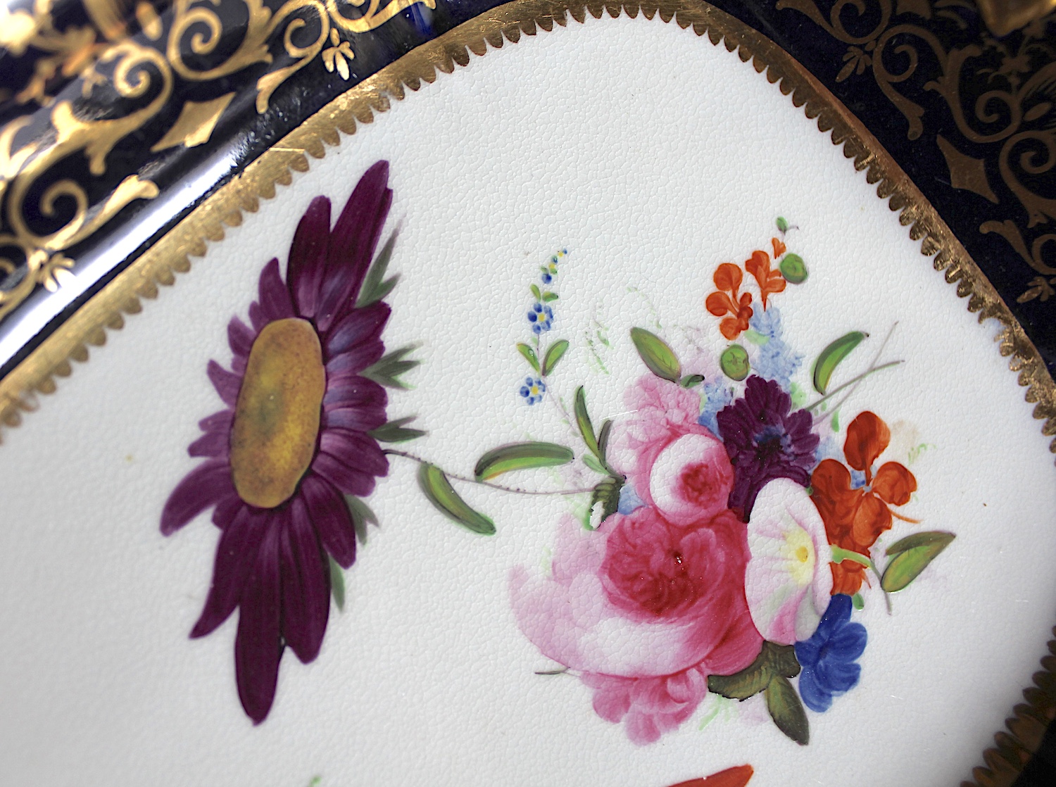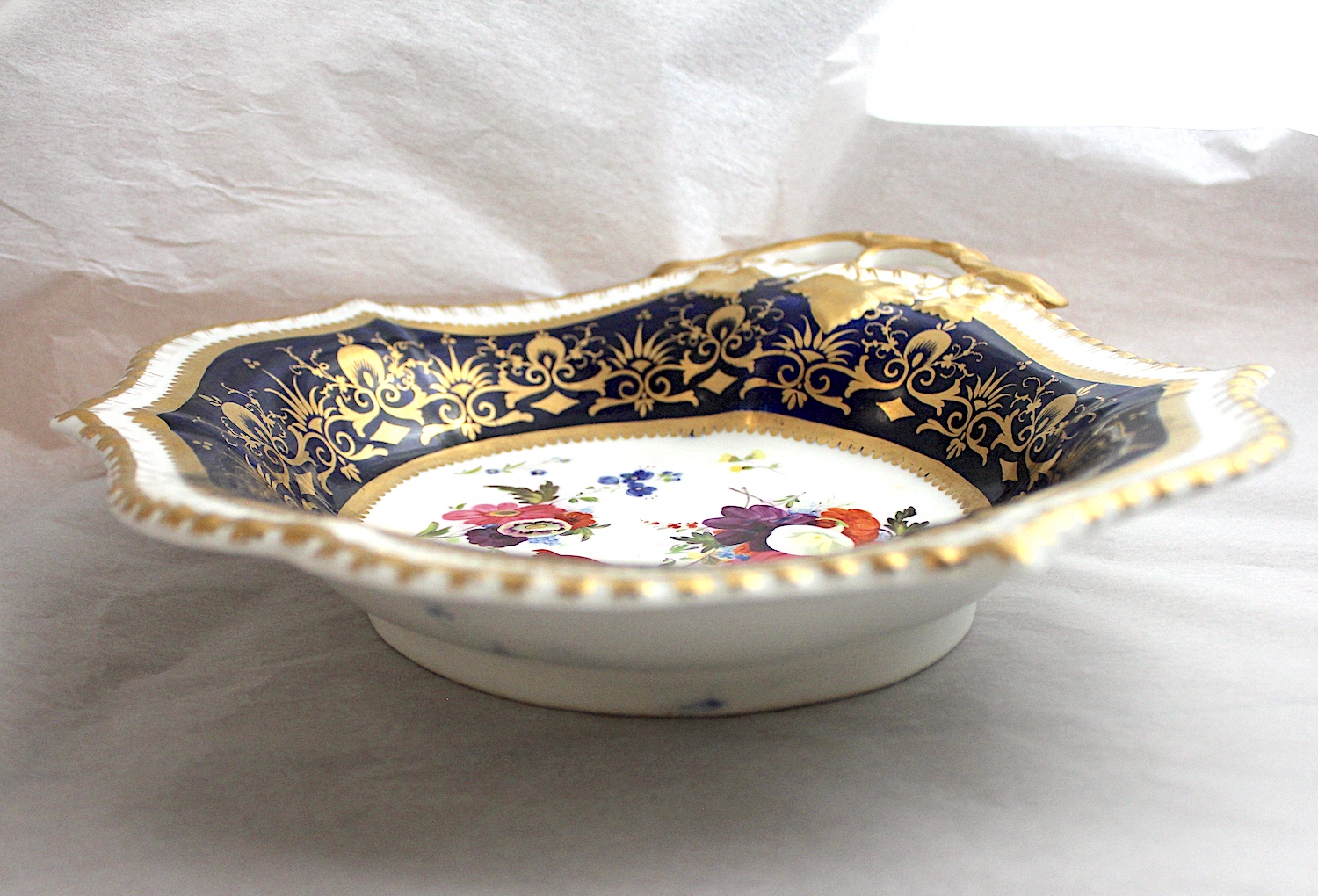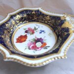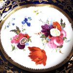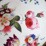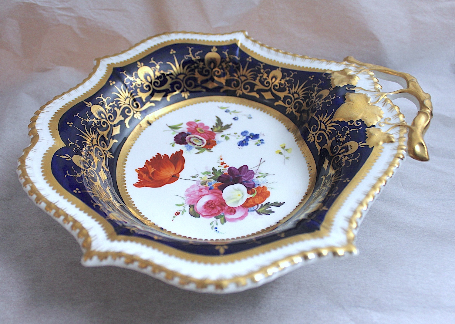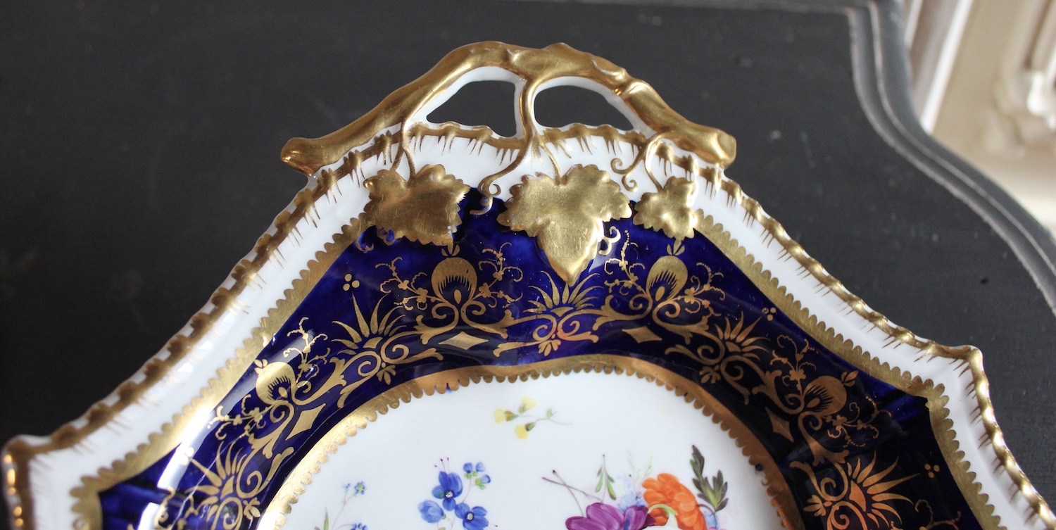 ハンドペイントで、美しく花々が描かれた、片手ハンドル付きのお皿です。