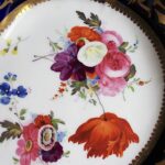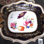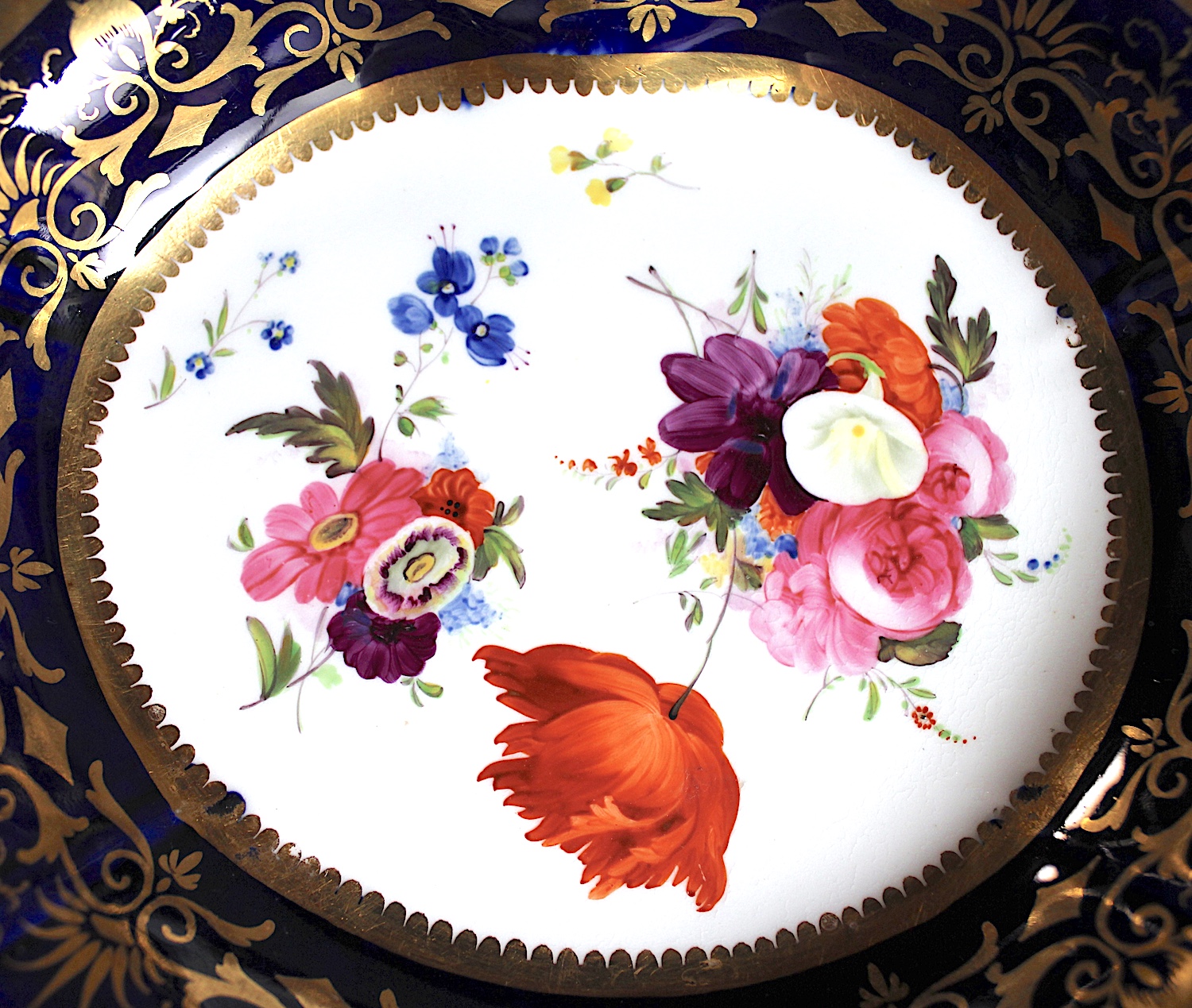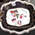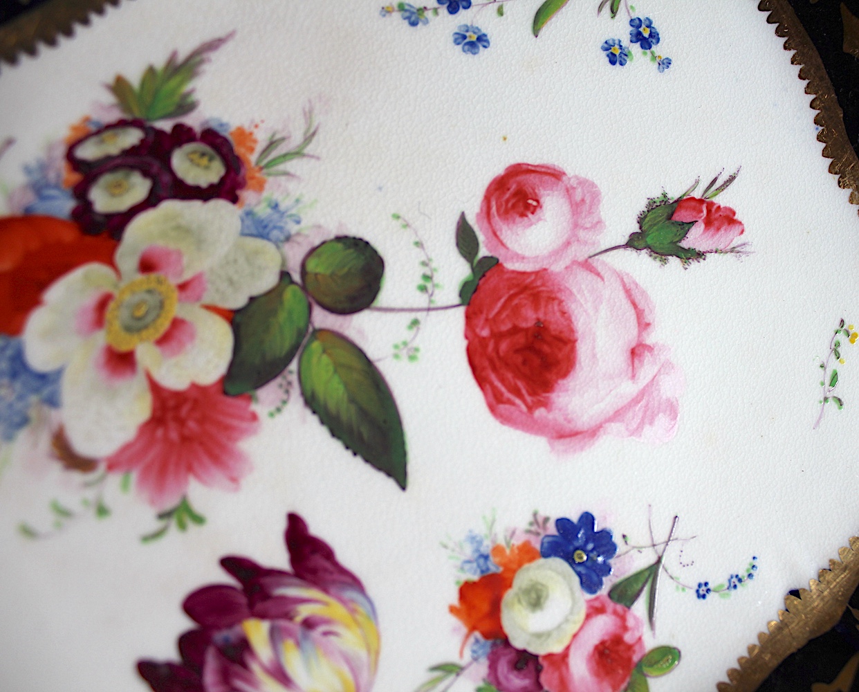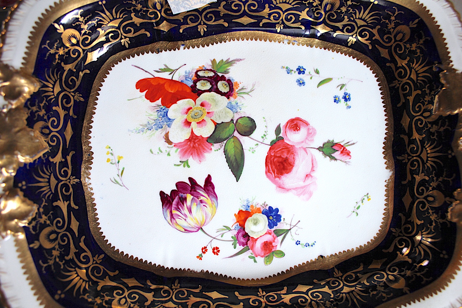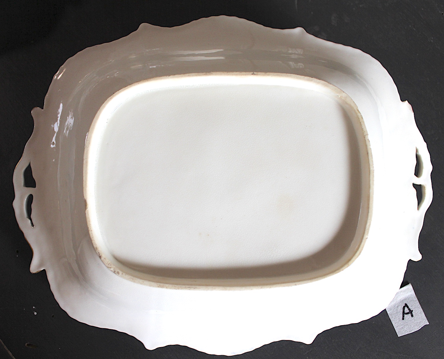 美しい花の絵に、両手ハンドルがついた、大きめプレート。Aと同じサイズですが、惜しいことにヘアラインが入っています