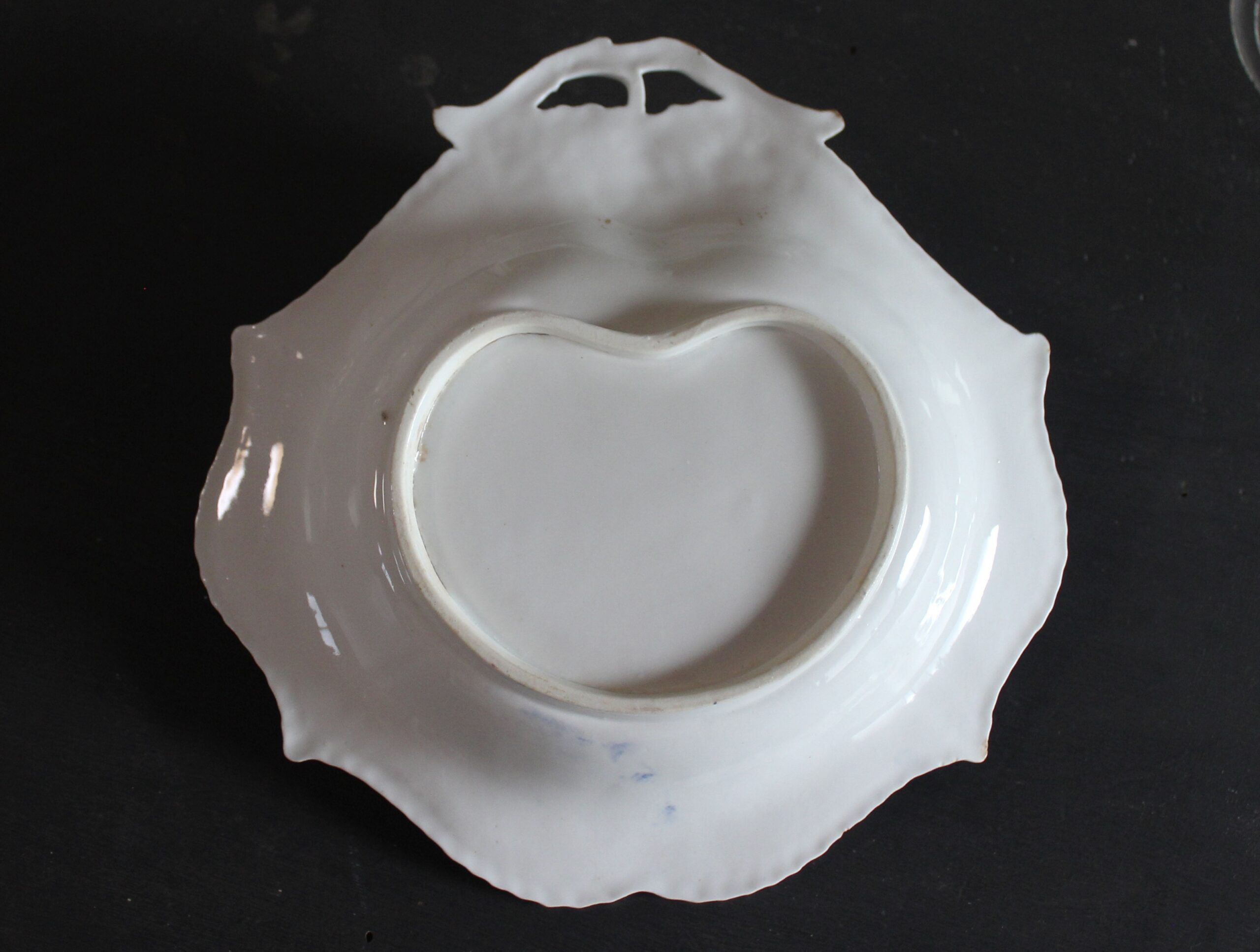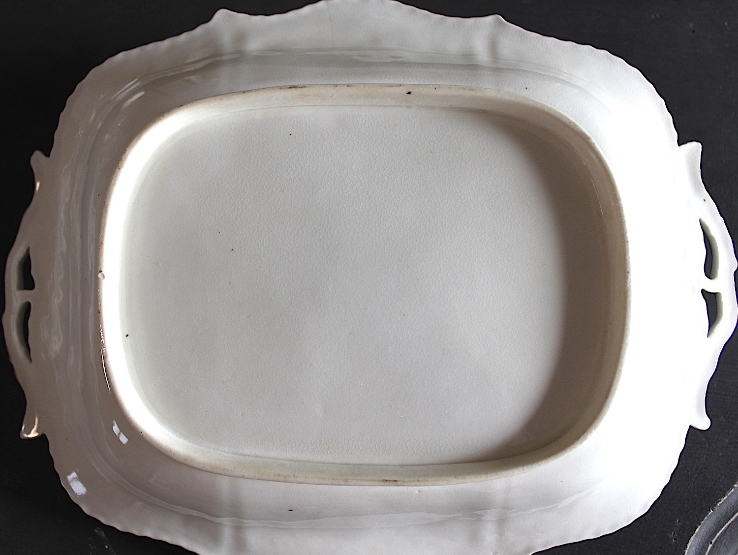 このプレートは、全体に細かな貫入があり、裏面のハンドル部分に1箇所、小さなかけがあります。表面から目立つものではありません。