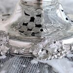 足元にも、葡萄の装飾と、ピアス、エングレーヴィングが施され、重量もたっぷりあって豪華な印象となっています。