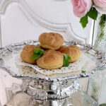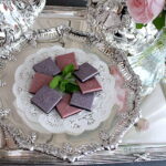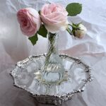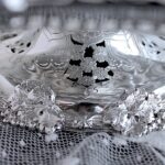 ティファニーのピアスと葡萄装飾が美しいコンポート(タッザ、ともいいます)。ケーキスタンドとしてもお使いいただけます。