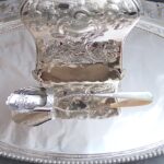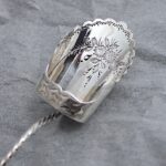 このような花びら型スコップタイプのものはもともと数が少なく、しかも白蝶貝ハンドルで、となると大変レアです。