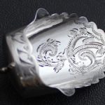 Sold スターリングシルバーキャディスプーン Sold キャディスプーン、スコップ型 1895年バーミンガム キャディスプーンスコップ型、ビクトリアン ¥ 人気の高いスコップ型キャディスプーンのご紹介です。 エングレーヴィングもたいへんきれいです。 材質、産地、サイズなど fa-arrow-circle-right 年代、サイズ、コンディション 材質:スターリングシルバー 925/1000 年代、産地:英国バーミンガム,1895年、Victorian メーカー:WJH.William J Holmes,William J Holmes Ltd (after c1938) サイズ,重さ:11cm x 2.8cm x 2cm、重さ12g コンディション:エクセレント ご予約済みです。 Sold ピアスサービングスプーンペア 1903年シェフィールドSold フレンチシルバーシュガー入れ フランス パリ19世紀後半