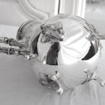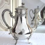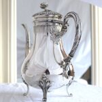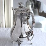フランス950シルバーのコーヒーポットです。トップのつまみは薔薇の花、シンプルですが、その分お手入れもしやすいフォルムです。