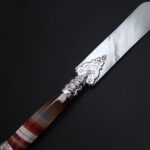 アゲート(瑪瑙、めのう)のハンドルと白蝶貝が美しいレターオープナーです。