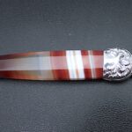 レターオープナーはコレクターズアイテムで、とても人気のあるアイテムです。様々なデザインや異素材の面白いものがあり、このお品も、刃の部分は白蝶貝、ハンドルは瑪瑙、つなぎ目部分のみシルバー、というかなりユニークな作りになっています。