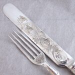 - サイズ,重さなど:ナイフ長さ19.7cm重さ40g,フォーク長さ15.5cm重さ30g