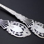 ひとつひとつ、糸鋸で模様を切り出していった職人の技が堪能できる逸品です。