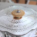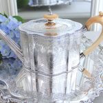 アイボリーの彫刻つまみとハンドルがとても魅力的な、ティーポットです。