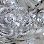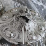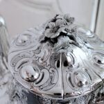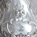 ロココスタイルの優雅なフォルム、側面に施された花々、細かなチェイシング。